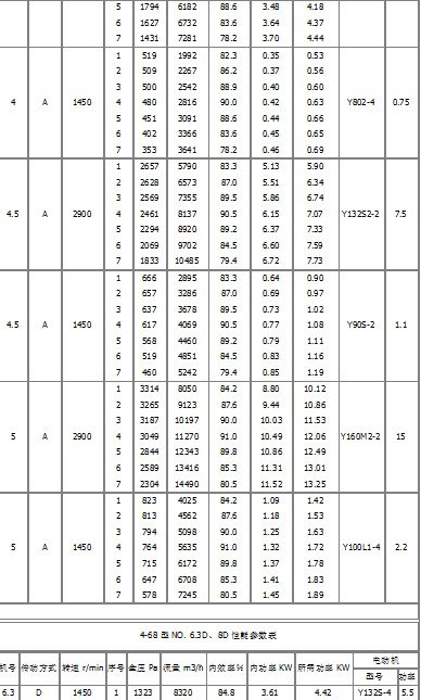 1、本風機制成單吸入,機號有:№2.8、3.15、3.55、4、4.5、5、6.3、8、10、12.5、16、20等十二個機號。