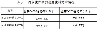 入窯生料的均勻程度是保證立窯煅燒的基礎(chǔ)上,生料成分愈趨于穩(wěn)定, 立窯煅燒愈穩(wěn)定, 窯內(nèi)通風(fēng)阻力越均勻。如果入窯生料成分頻繁發(fā)生波動, 立窯就不能處在一個穩(wěn)定的狀態(tài), 熱工制度會經(jīng)常遭到破壞, 窯內(nèi)的通風(fēng)阻力也會時大時小, 造成高壓離心風(fēng)機(jī)很難適應(yīng)。從我廠 兩條機(jī) 立窯的 生產(chǎn) 實(shí)際 情況分 析,5 310m @ 10m 生產(chǎn)線的原料系統(tǒng)有 2 個石灰石倉, 配料過程可搭配使用, 且配料采用計(jì)量較精確的失重秤, 因此出磨生料碳酸鈣合格率、三氧化二鐵合格率均高于 5 215m @ 10m 機(jī)立窯線 10% 左右, 入窯生料的均 勻性較好 , 所以高 壓高心 風(fēng)機(jī)應(yīng) 用的效 果好于5 215m @ 10m 的機(jī)立窯。兩條生產(chǎn)線出磨生料合格率對比情況見表 2。 .jpg)