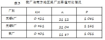 我廠原料特性較差, 為保證生料的易燒性, 不得不在配料時選擇較低的 n 值( 一般低于 119) 。由于液相量偏高, 易結(jié)大塊, 因此高溫帶阻力較大, 在操作中一旦掌握不好, 易產(chǎn)生粘邊、抽心、還原等不正常窯情, 因此增加了離心風(fēng)機(jī)使用的難度。而南方一些地區(qū)由于其原料特性較好, 生料易燒, 一般其配料的 n值選擇較高 ( 一般在 212 左右) , 底火阻力小, 通風(fēng)狀況好, 為高壓離心風(fēng)機(jī)的應(yīng)用提供了良好的條件。我廠與南方地區(qū)某廠三率值對比情況見表 3。