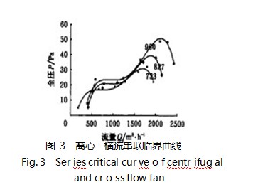 1) 橫 流風(fēng)機(jī)與 離心風(fēng)機(jī)串 聯(lián)運(yùn)行, 保證 前一級 風(fēng)機(jī)在串 聯(lián)臨界點(diǎn)以 上工作, 可 以提高風(fēng) 機(jī)串聯(lián)后總 的全壓及流 量, 反 之風(fēng)機(jī) 串聯(lián) 后總的全壓及流量 將低于后一級單風(fēng) 機(jī)對應(yīng)的 全壓及流量。
