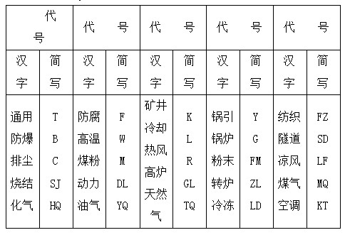 常用風機用途代號