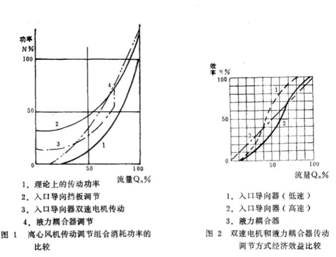 力藕合器 , 在低負荷 時 , 其效率將 比單一 的擋 板調 節(jié)高 1 . 53 ~ 2 . 01 倍 , 而其耗功僅為導 向 擋板調 節(jié)的 65 . 3 ~ 53 . 1 %