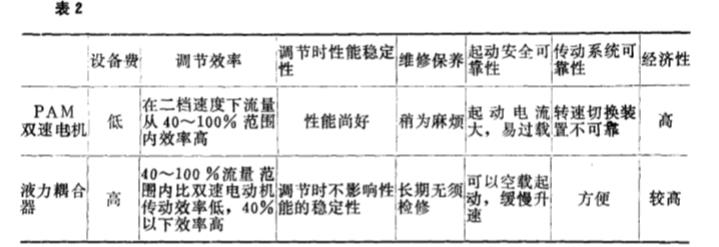 電機傳動和液 力藕 合器傳 動是 目前火 電廠鍋 爐 風機 比較理 想的調 速裝置 。 表 2 是雙速 電機和液力藕合器兩 種調節(jié)方式的 比較。 由于風機 的節(jié)能工作還 涉及到管理 、 風機 本身的效率 、 設