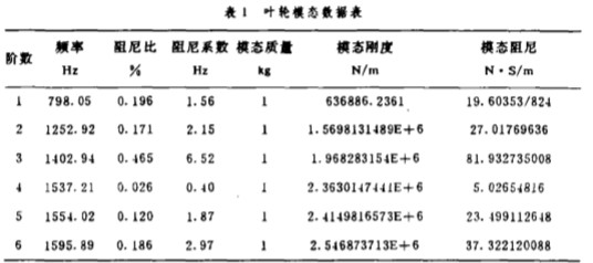 經(jīng) F盯 分析儀進(jìn) 行信號(hào)分析 , 得到 葉輪和機(jī) 殼的幅頻特性 曲線(xiàn) , 再經(jīng)計(jì)算機(jī) 進(jìn)行 曲線(xiàn)擬 合 , 得到葉輪和機(jī)殼的 各階模態(tài)參數(shù) , 如 表 1 和 表 2 所 示.